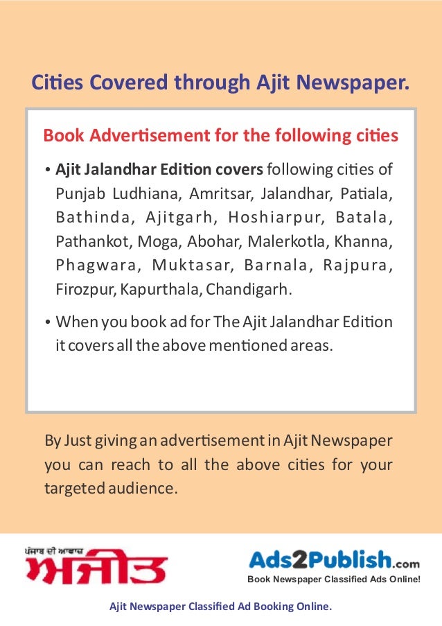 Ajit Newspaper Today Kapurthala - The newspaper was founded in 1941 in urdu language.